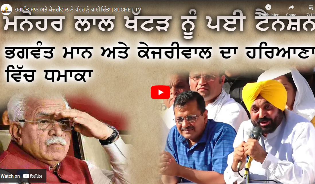 ਭਗਵੰਤ ਮਾਨ ਅਤੇ ਕੇਜਰੀਵਾਲ ਨੇ ਖੱਟਰ ਨੂੰ ਪਾਈ ਚਿੰਤਾ | SUCHET TV
